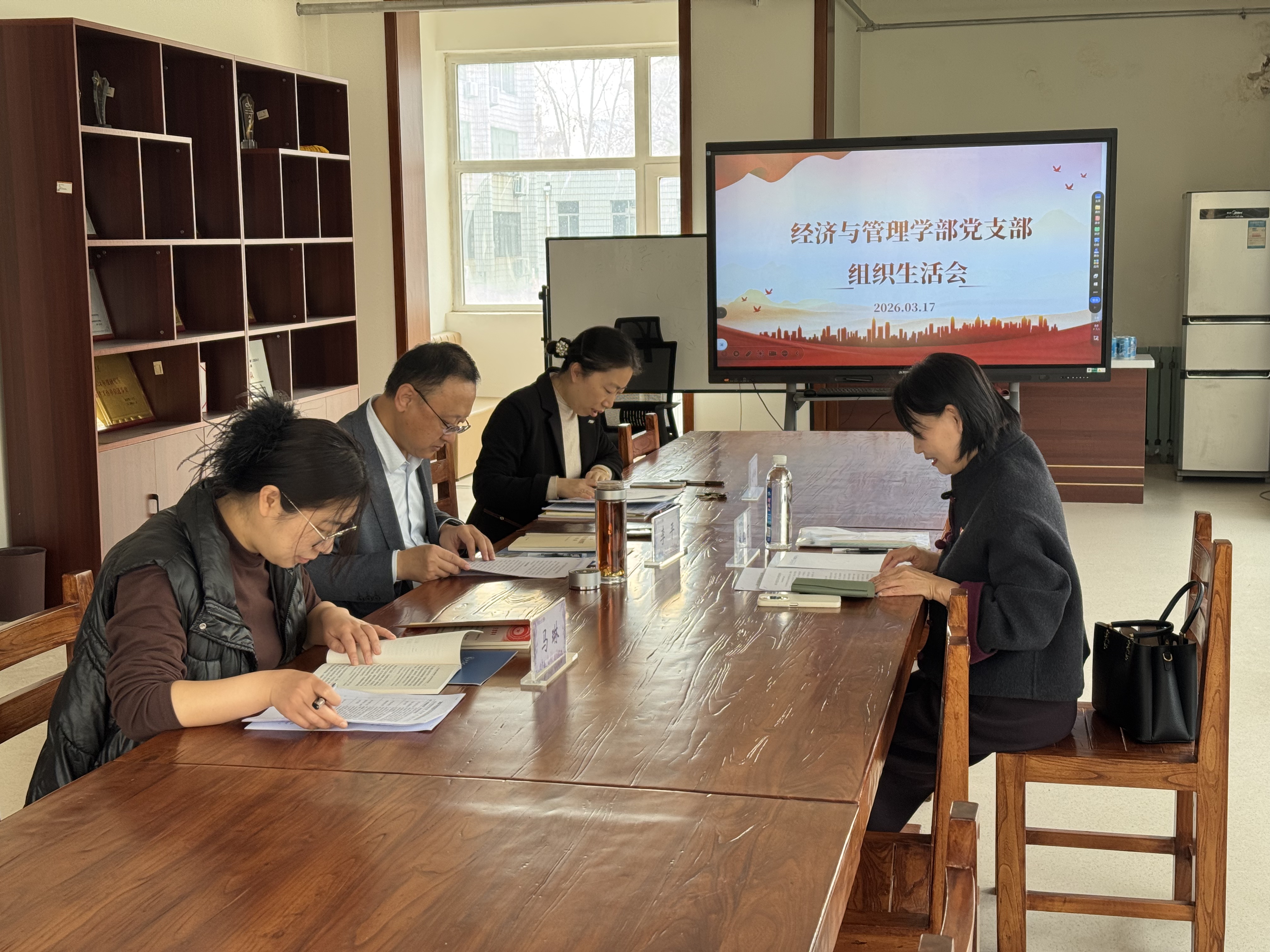 2026年3月17日,经济与管理学部党支部在东校区2号教学楼229会议室召开2025年度组织生活会。经济与管理学部党支部全体党员参加会议,机关党委宋红丽老师到会指导。